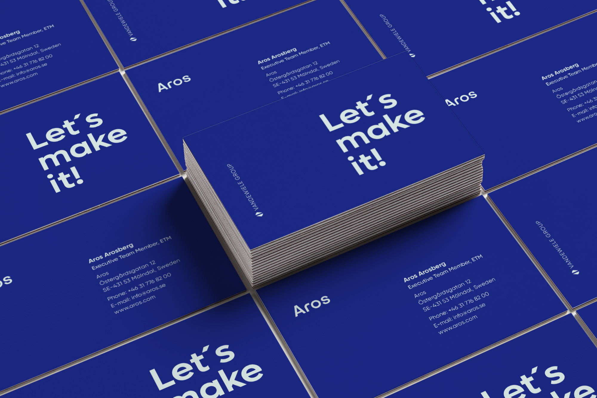 The visual identity was shaped to mirror this spirit — bold, dynamic, and contemporary. Oversized typography and playful graphic cuts create a sense of movement and rhythm, echoing both the precision of engineering and the inventive mindset of the people behind it. It is an identity rooted in the core of Aros, designed to feel relevant today while leaving space to evolve with the future.